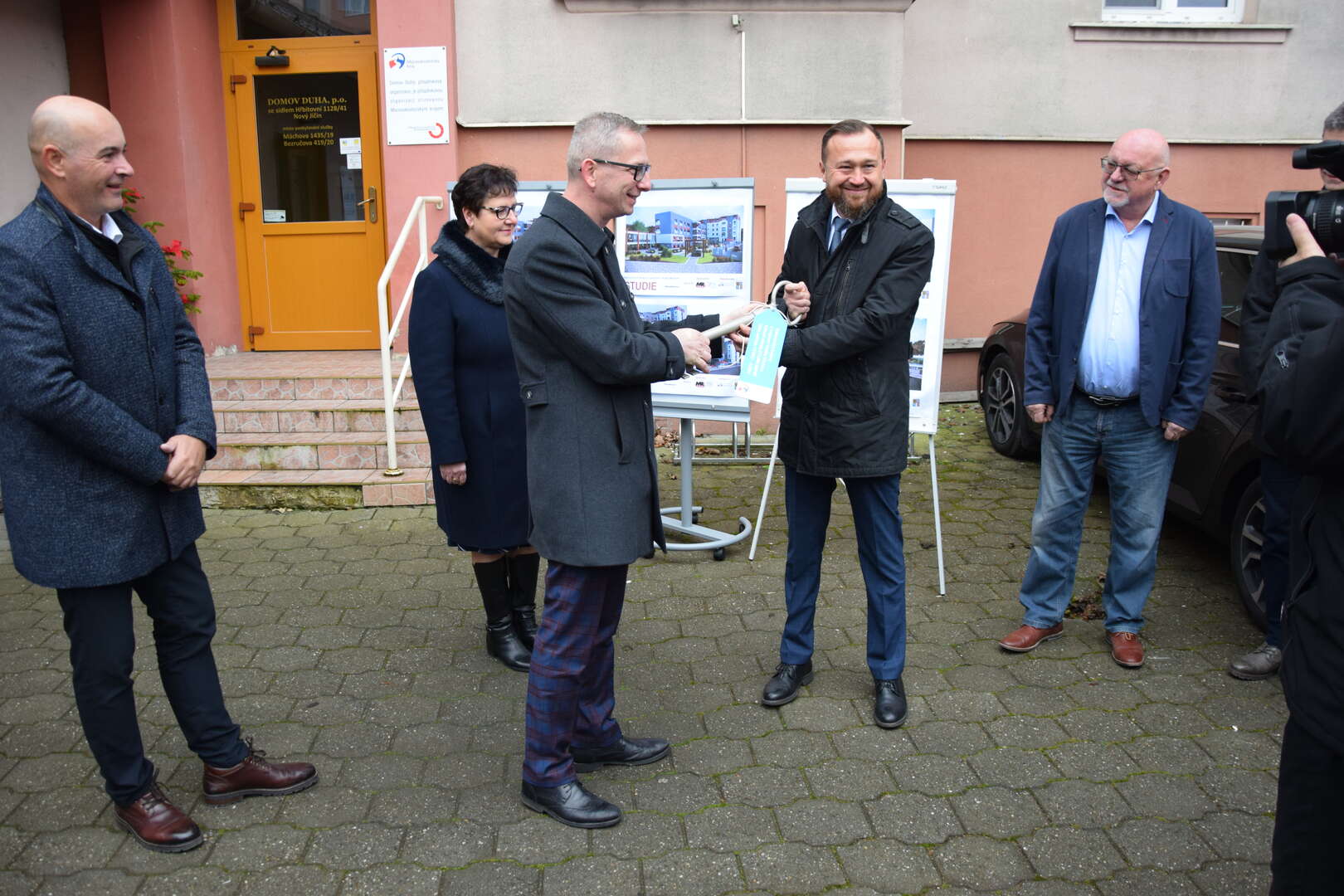 Dne 5.12.2022 proběhlo předání stavby zhotoviteli, stavební firmě, která rekonstrukci provede a tou je firma Strabag. Předání proběhlo za přítomnosti představitelů firmy Strabag, paní ředitelky domova Duha Mgr. Dany Jančálkové, paní senátorky Ivany Váňové, MBA, náměstka hejtmana kraje Bc. Jiřího Navrátila, MBA a vedoucího odboru sociálních věcí Mgr. Aleše Neuwirtha. Mezi hosty byl také starosta města Nový Jičín Bc. Stanislav Kopecký a vedoucí sociálního odboru města Mgr. Daniela Susíková. Práce na stavbě započnou od 1.1.2023.