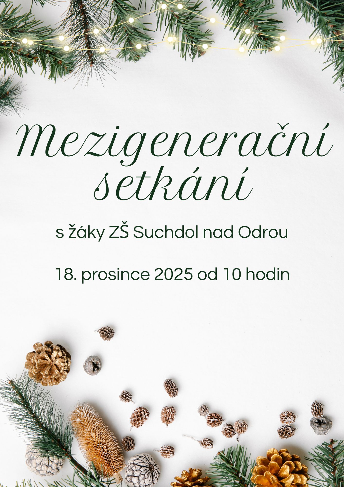 Proběhne mezigenerační setkání se žáky ZŠ Suchdol nad Odrou. Těšíme se na společné chvíle napříč generacemi.