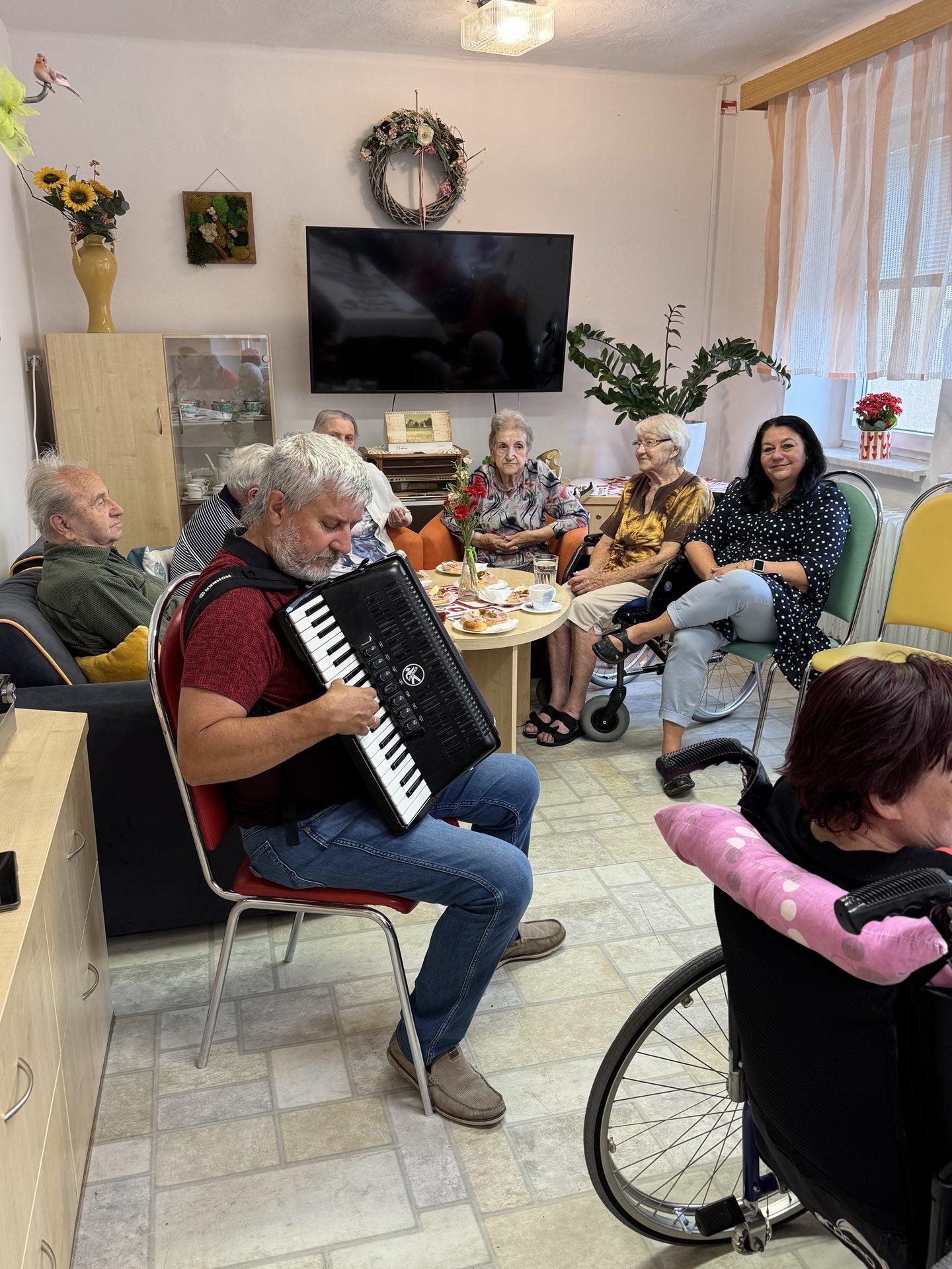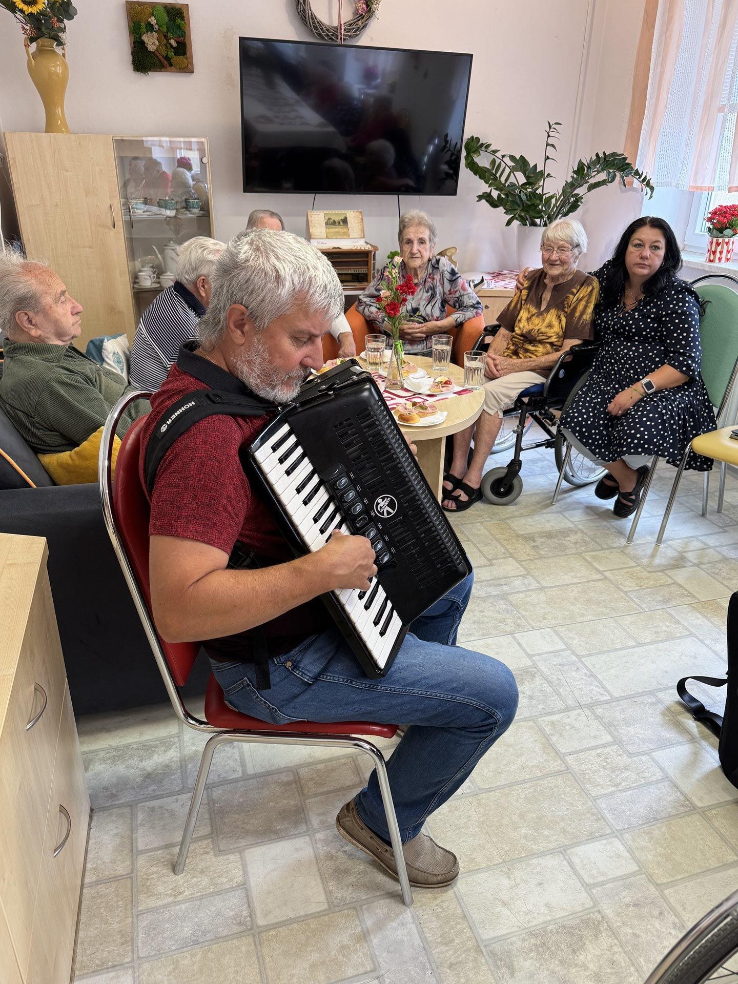 Oslava se opravdu vydařila, paní Daniela si pro každého připravila drobné občerstvení v podobě koláčku a chlebíčku, nechyběla káva a ani přípitek na zdraví. O hudební zážitek se postaral harmonikář pan Piskoř, který hrál známé písně, a tak se domovem nesl krásný zpěv všech přítomných. Doufáme, že si paní Daniela oslavu užila a ještě jednou přejeme vše nejlepší!