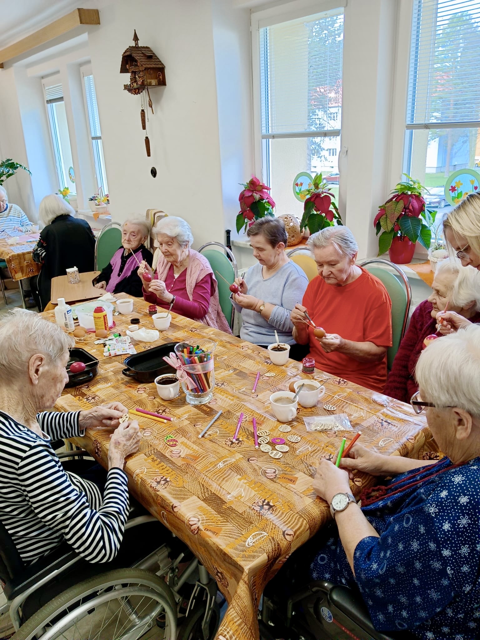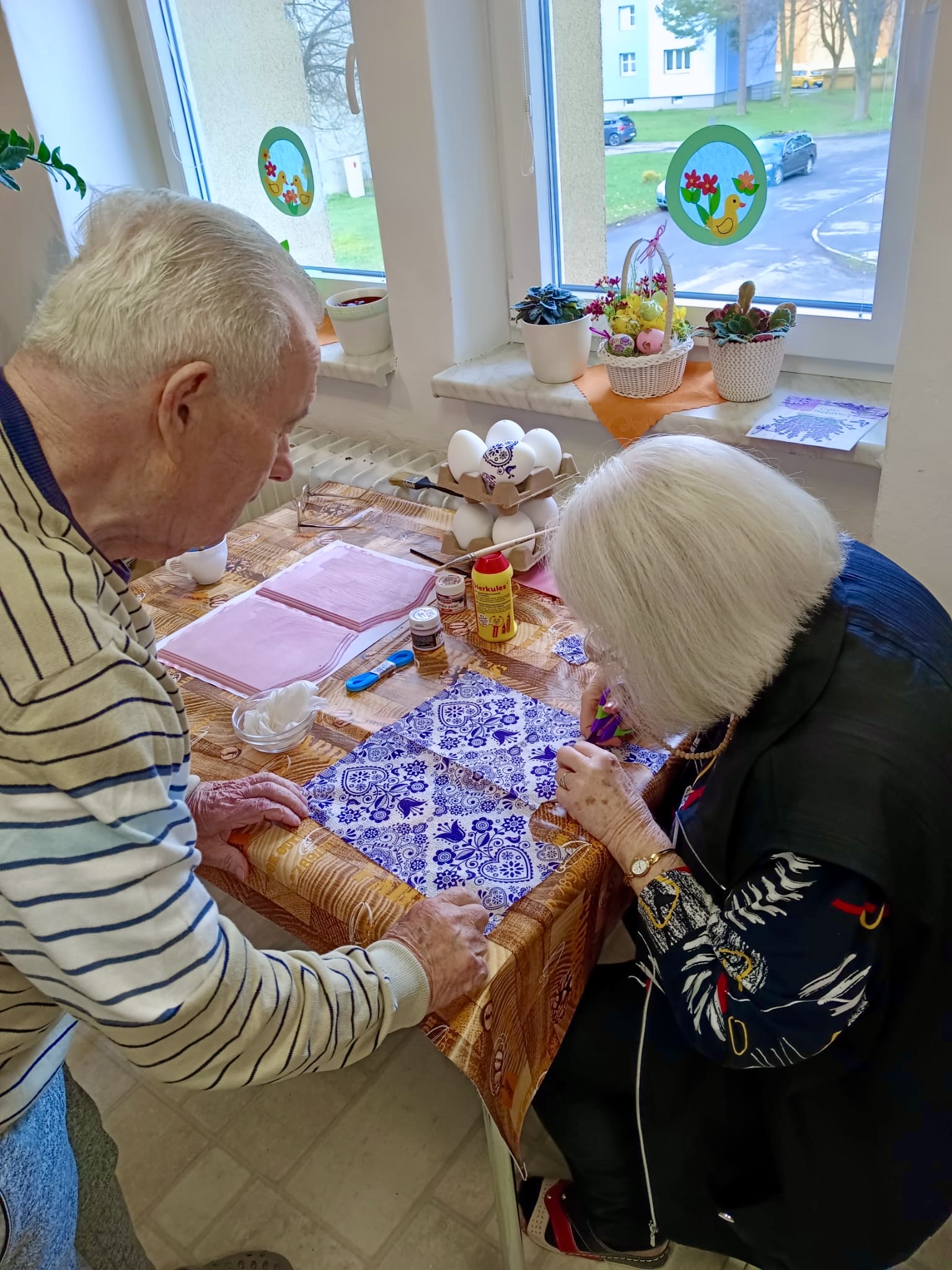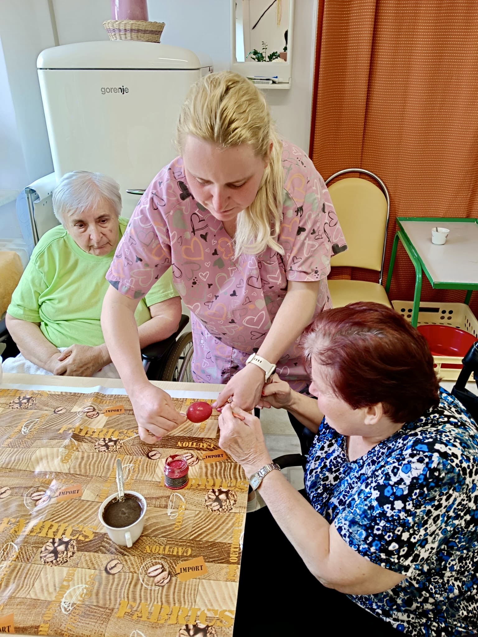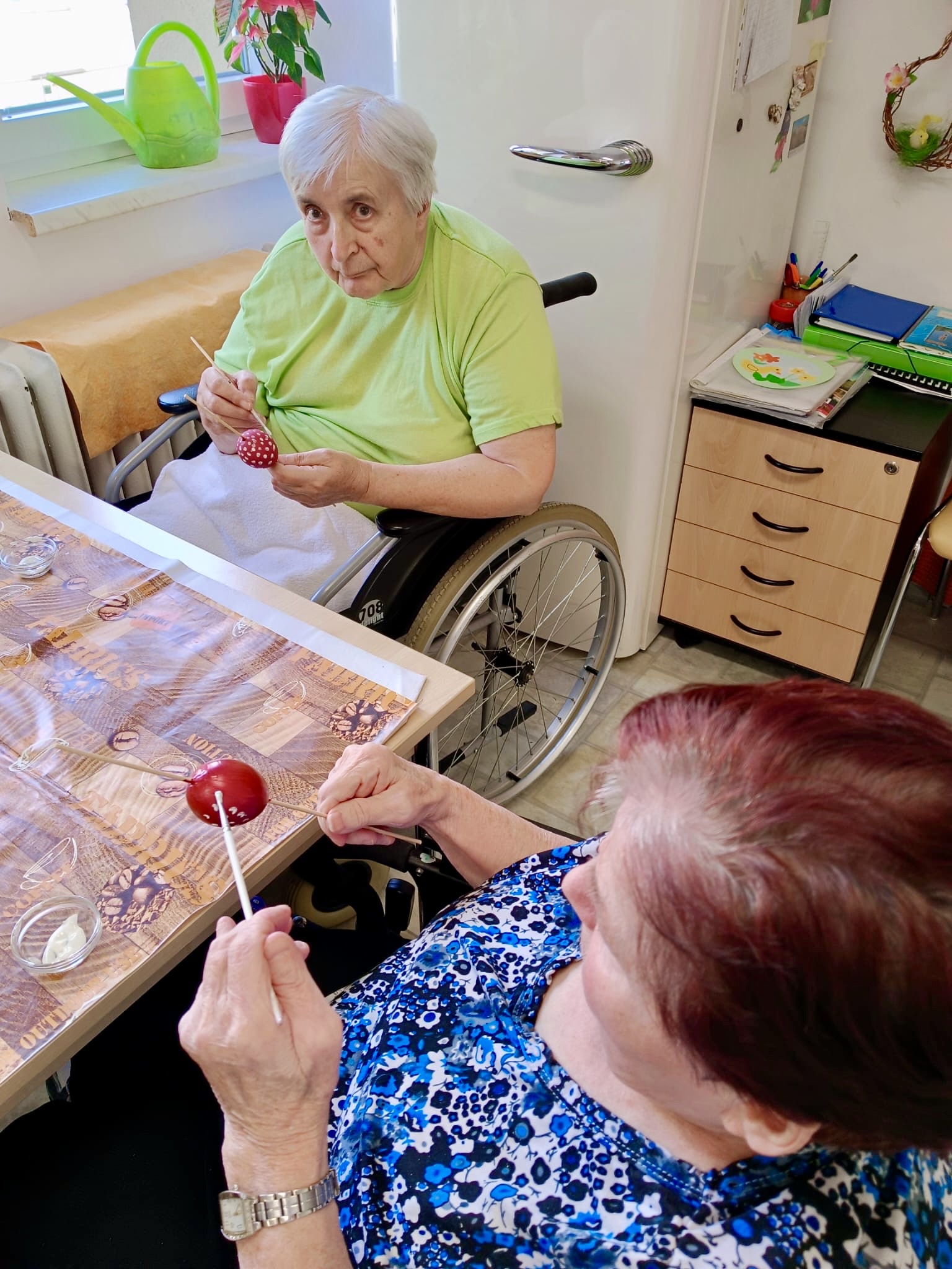Velikonoční období jsme si v našem domově užili opravdu naplno. Nechybělo pečení velikonočních beránků ani perníčků. Klienti se zapojili i do zdobení vajíček, pletení tatarů a příprav na velikonoční pondělí.